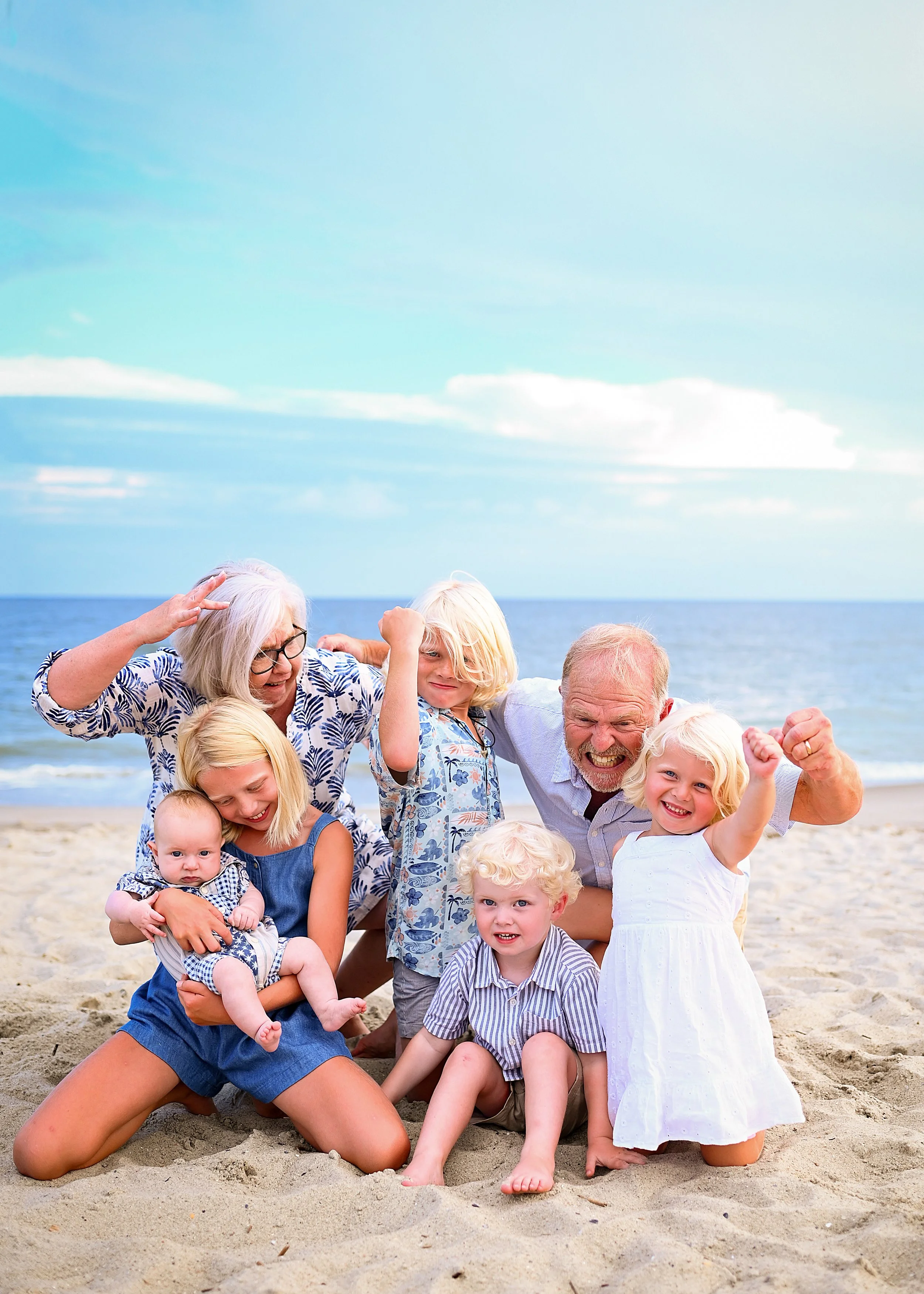 As a coastal North Carolina native (I was raised on Oak Island), I love meeting families who come to the area for vacation! Since 2015, I’ve photographed over 800 families who have traveled to our local beaches. Many times, grandparents come for a week with their adult children, grandchildren, and maybe even a pet or two. Your family members might be spread apart across the country and the week at the beach is such a special time to have everyone together. Maybe you have young children and you want adorable photos of your babies playing on the beach and updated family portraits. I’m a mom of four little ones myself and I know how quickly they grow (and I promise to make the experience enjoyable for everyone- I’m no stranger to chaos or toddler meltdowns!). I even have many groups I’ve seen multiple times over the years and it makes my heart so happy to watch your families grow each summer! And of course, families of all types are welcomed and celebrated in front of my camera 🏳️🌈👩🏼🤝👨🏿👨🏻🦽